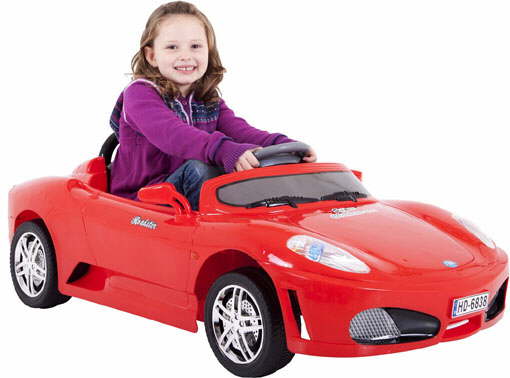 Absolutley stuning and very close design like Ferrari F430 Spyder Style sports car with working lights, MP3 player input and all other functionlities your child can dream of. It features a 6v Rechargeable Battery with a Full Function Remote Control for Parents who's kids can not reach the accelerator pedal or can not yet control the car, so can be driven by the child using the car's controls or by a parent using the remote. If necessary, the parent can over ride the childs driving using the remote control. Comes complete with UK Charger and all the necessary accessories.