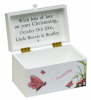 If this is a gift, we can include a hand painted special message from the sender to mark the occasion at a cost of £12.95, see at the bottom of this page. The message will be placed on the inside lid of the keepsake box.