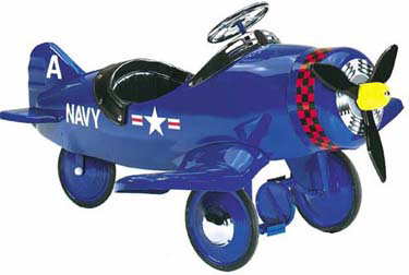 With very high detail and quality, its features include solid rubber tyres for a smooth ride and rotating propeller. When pedalled, the propeller drive band rubs against the chassis, giving a realistic engine noise!! The plane is finished in a long-lasting lead-free powder coat and adorned with original-vintage graphics.