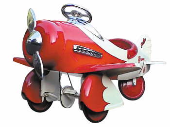 Hey Kids Now you can own your own pedal plane that's been designed just for you. This full side reproduction features heavy gauge metal construction and is finished in beautiful red & cream powder coat.