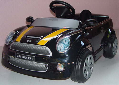 Features Age: Suitable for age 5 and under Speed: 3mph (5km/h) Rubber Tyres Adjustable seat Forward, reverse and neutral gears Electronic accelerator - the car will stop when your foot is off the accelerator Electronic brake - depressing the brake will stop the car even if the accelerator is pressed at the same time Tough Polyethylene bodywork - very strong and flexible Paint deep injected means scratches can be buffed away Top quality European construction and design Made in Italy under license from MIni and designed in conjunction with their engineers All the authentic real car badges and stickers Realistic alloy-like wheels Sports steering wheel Wing mirrors Comes almost fully assembled 1 year guarantee Rechargeable battery and charger included