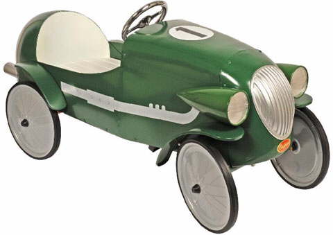 This wonderful retro style car reminds us of race cars going round the track of Le Mans in the good old days. With adjustable pedals and an adjustable seat. This sturdy pedal car is made out of metal.