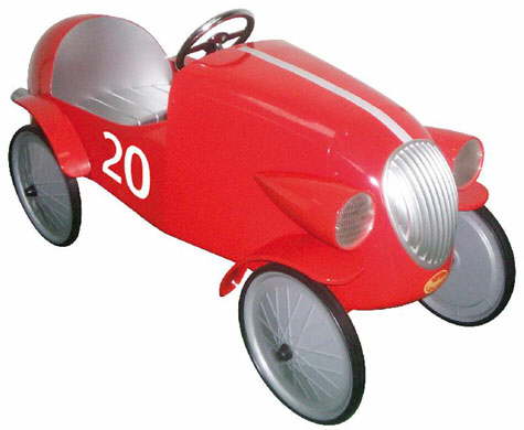 This wonderful retro style car reminds us of race cars going round the track of Le Mans in the good old days. With adjustable pedals and an adjustable seat. This sturdy pedal car is made out of metal.