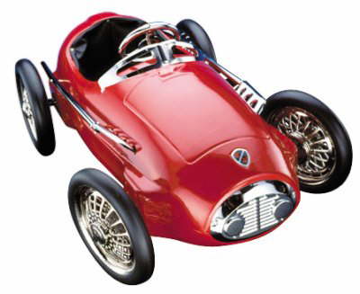 Inspired by the famous 1952-1957 Ferrari F2 Racers, this car is made with heavy gauge steel and finished in lead free powder coat for a durable great looking finish in gloss black.