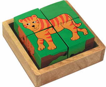 This chunky wooden block puzzle fits together to make six different jungle pictures. This product is made of rubber wood. Product dimensions: 13cm x13cm x60cmGreat for learning and recognition skills.