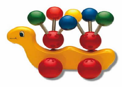 A very beautiful brightly painted and totally distinctive colourful toy. This really is made to a very high quality standard and the picture is not enough to emphasise the elegance of Jimmy. Your child will love touching the multicoloured balls as they dance around as the toy is rolling.