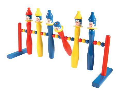 Exclusive to the Quality Toys range.This is a colourful fun bowling game with a difference. Roll the ball and knock the clowns’ hats off. Makes an ideal gift set for children and is good for hand and eye co-ordination. Size: 23cm x 44cm x 5cm