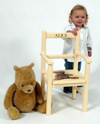 Our Personalised Armchairs are made in the UK, all quality items are crafted in MDF. Each item is hand painted in top quality paint which gives a luxurious finish. Then a unique Teddy design is placed on to the Chair & then personalised with the child's name.