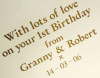 Please use the special message box to advise us of personalisation details. This will appear when the shopping cart page opens, as soon as you click the buy button.