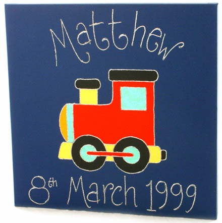 This lovely hand finished personalised Train Express canvas is a perfect accessory for a boy's room and an ideal new baby, christening or birthday gift.