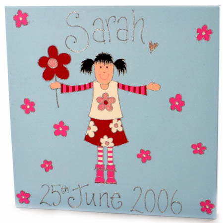 This hand finished personalised Flower Girl canvas is a perfect accessory for a girl's room and an ideal birthday gift.