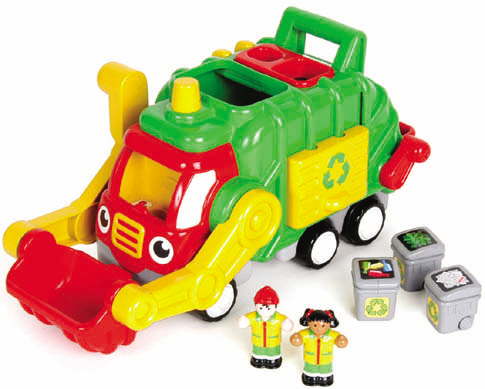 Friction powered recycling truck with tip & release action. No batteries needed. An ideal kids nursery toy. There is so much to do with this friction powered kids toy. Our award wiining toys are powered by children's energy and imagination. These toys are made by WOW Toys and have been designed to stimulate learning through creative play and discovery using vibrant colours, sounds and mechanical features.
