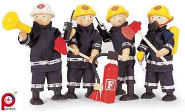 Firefighters to complement the station and fire engine. Includes all items as shown in picture:1 Captain3 firefighters2 Axes2 Walkie Talkies1Fire Extinguisher1 Breathing apparatus1 MegaphoneHeight: 12.5cm