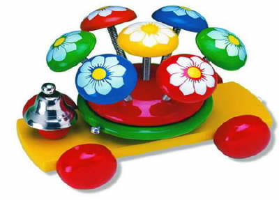 A very beautiful brightly painted and totally distinctive colourful toy. This really is made to a very high quality standard and the picture is not enough to emphasise the elegance of this toy. Your child will love touching the multicoloured balls as they dance around to the sound of the little bell as the toy is rolling.
