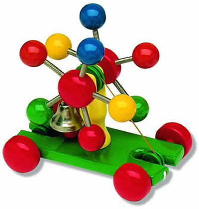 A very beautiful brightly painted and totally distinctive colourful toy. This really is made to a very high quality standard and the picture is not enough to emphasise the elegance of this windmill. Your child will love touching the multicoloured balls on the windmill’s sails that rotate and ring the bell as the toy is pulled along. Length: 19 cm