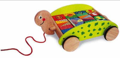 A great colourful wooden blocks cart for young children. The cart has a turtle design and can be pulled along. The various colourful blocks are a favourite with children and encourage colour co-ordination and shape recognition skills.Dimensions: 29cm x 44cm x 17cm