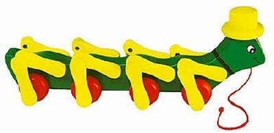 This pull along cricket is great with young toddlers. When pulled he hops his legs and is fun to watch. Size: 33cm x 12cm x 9cm