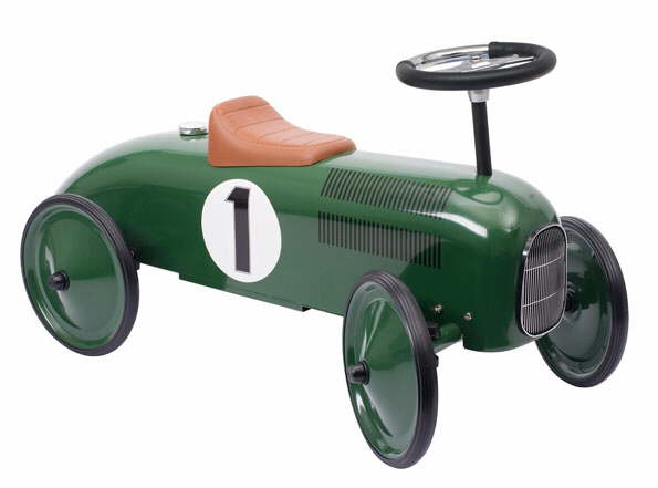 This great new retro classic metal racer in British Racing Green is pure energy! Features a strong steel body makes this ride-on toy blow away its plastic counterparts. Also features a working steering column and rubber tyres.