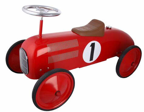This great new retro classic racer is pure energy! Features a strong steel body makes this ride-on toy blow away its plastic counterparts. Also features a working steering column and rubber tyres.