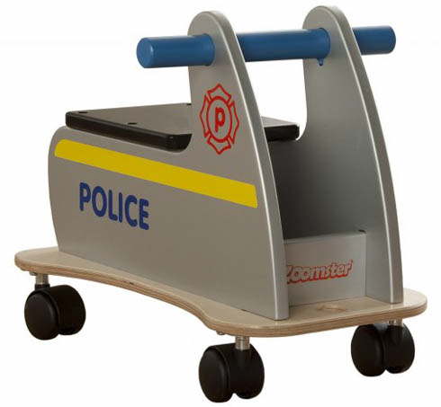 "You're nicked!" Fitted with clever multi-directional castors, this children's ride-on can go forwards, backwards, sideways and around with minimum effort, ensuring there'll be no getting away from this little cop car!