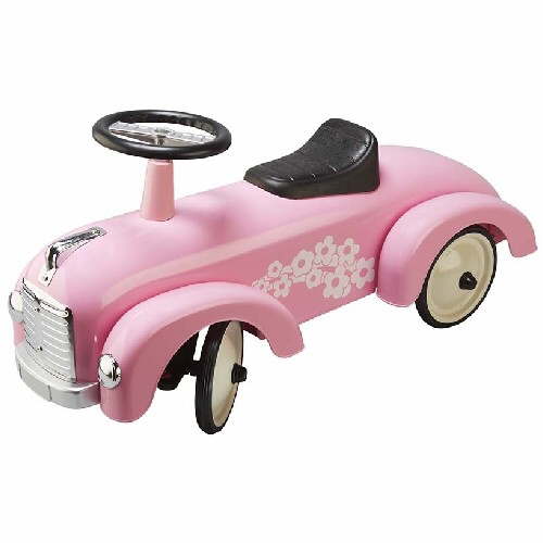 This great new design pink floral retro speedster ride on kids toy is pure energy! Vibrant pink coloured steel body with detailed chrome makes this ride-on toy blow away its plastic counterparts. Also features a working steering column, horn and flared wheel arches and rubber tyres.