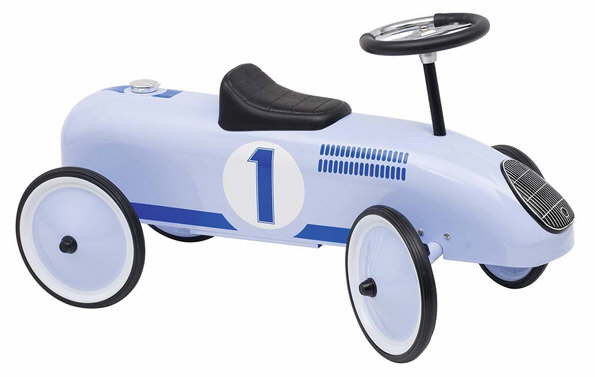 This great new retro classic metal racer in light blue is pure energy! Features a strong steel body makes this ride-on toy blow away its plastic counterparts. Also features a working steering column and rubber tyres.