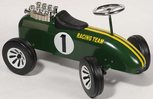 This great new retro classic metal F1 style metal racer is pure energy! Features a strong steel body makes this ride-on toy totally superb. Also features a working steering column and F1 engine detail. The striking British Racing Green colour makes it look superb and a real favourite with children.