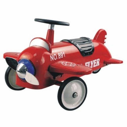 This great new retro ride on kids aeroplane is pure energy! Vibrant coloured steel body with detail makes this ride-on toy blow away its plastic counterparts. Also features a working steering column and rubber tyres. The plane has a rotating propellor at the front to add to the excitement.