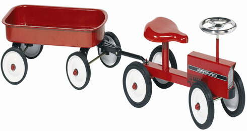 The strong steel tractor and trailer features solid steel wheels with rubber grip to ensure this does not mark the floor when playing indoors.