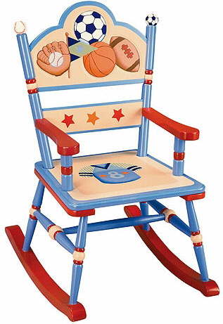 This beautifully hand carved and hand painted sports-themed rocking chair is perfect for you little boy's bedroom. With solid wood construction and raised appliques, this rocking chair's durability will serve your child well for years to come