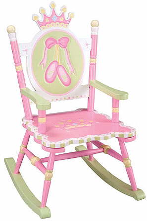 Now you can complete the Swan Lake room collection with her own Rocking Chair. The Collection features hand-carving, hand-painting, scalloped edges and a soft, muted palette of pink and creams and sage green. Hardwood turned posts and legs