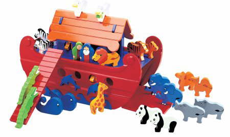 Mr & Mrs Noah are on their wonderful ark ready to welcome aboard 11 pairs of animals plus resident dolphins. Designed to incorporate lots of educational play value with plenty of access for little fingers. A very beautiful and unique brightly hand painted Noah's Ark.
