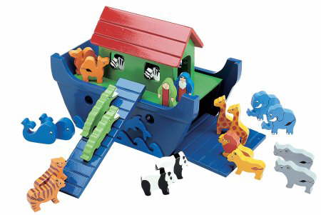 Children's colourful Noah's ark with animals. This brightly painted Noah's ark is a great toy and encourages group play.