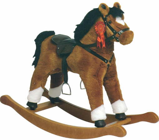 New luxurious fur fabrics - traditional materials and craftsmanship. These beautiful toys will stay the course. The soft rocking horse is strong and sturdy, handcrafted with realistic saddle with adjustable stirrups. Saddle height 23" (57 cm).