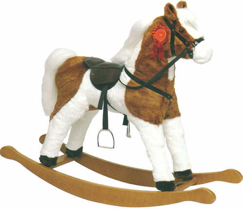 New luxurious fur fabrics - traditional materials and craftsmanship. These beautiful toys will stay the course. The soft rocking horse is strong and sturdy, handcrafted with realistic saddle with adjustable stirrups. Saddle height 23" (57 cm).